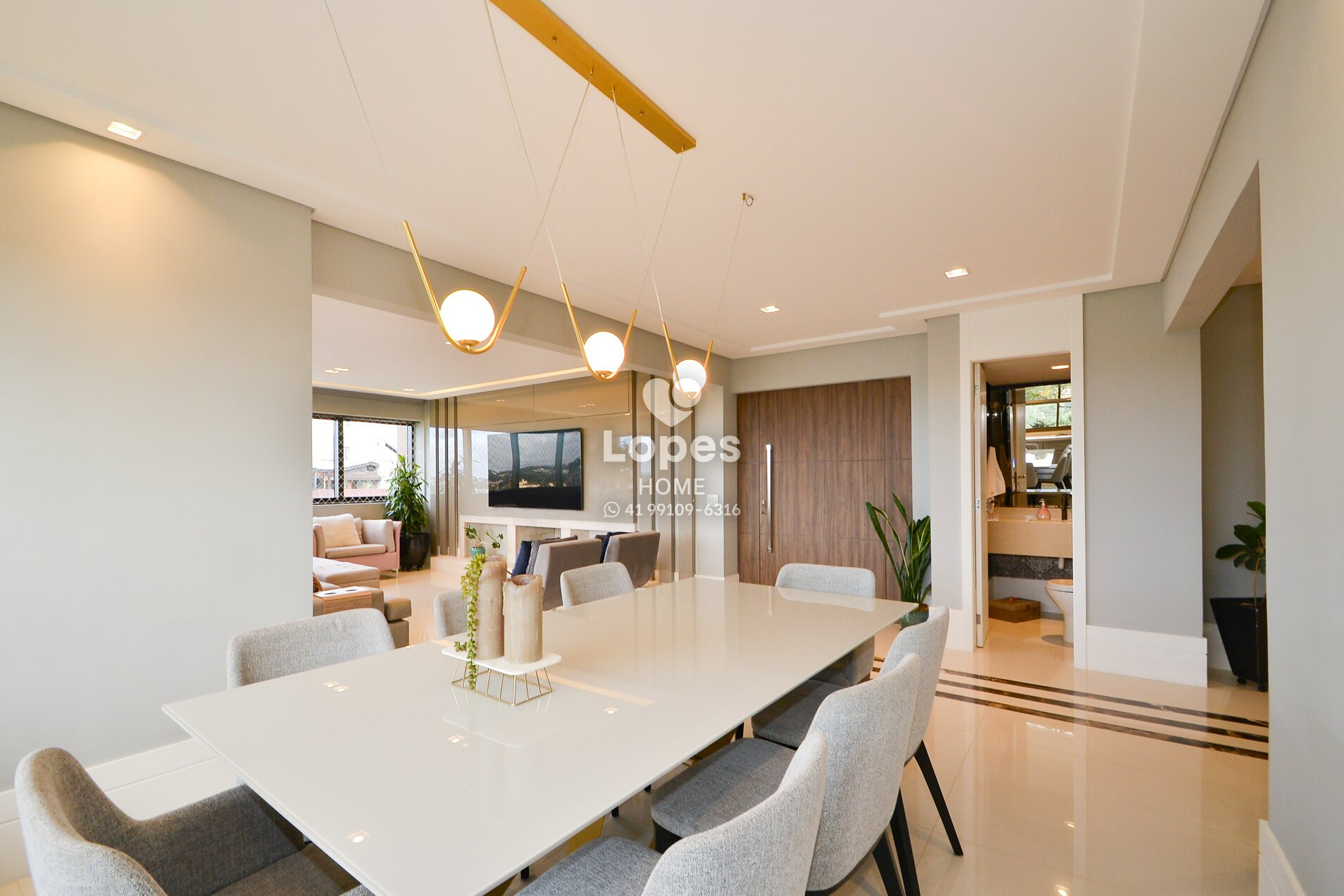 Ampla sala com três ambientes